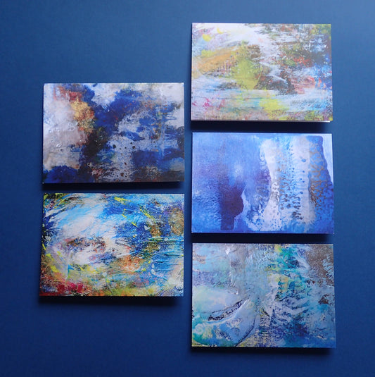 My greetings cards come in packs of 5, are blank inside for your own message, and include a white envelope for each card. Each one is a snapshot from one of my original paintings.