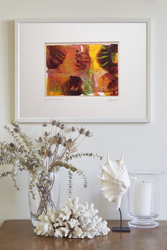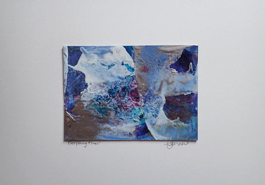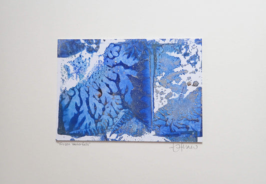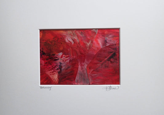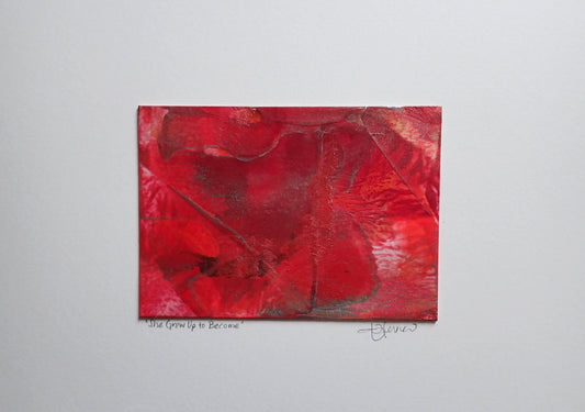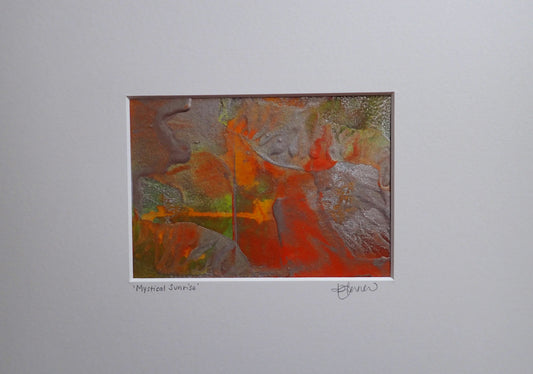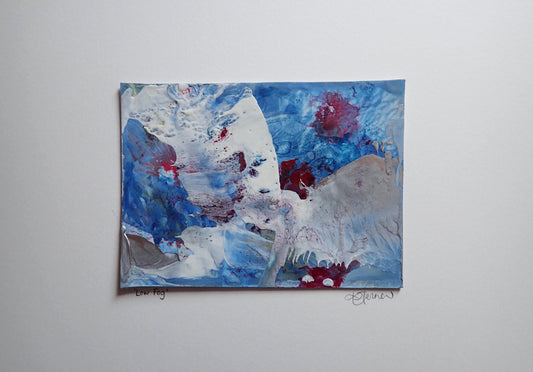 Encaustic Monotypes are created with pigmented encaustic wax melted on a heated metal plate, then transferred to paper or cardstock using pressure; no printing press is needed.