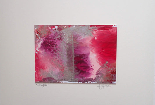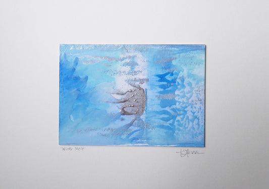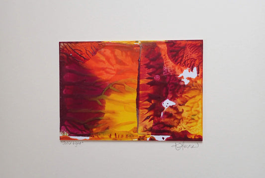 Encaustic Monotypes are created with pigmented encaustic wax melted on a heated metal plate, then transferred to paper or cardstock using pressure; no printing press is needed.